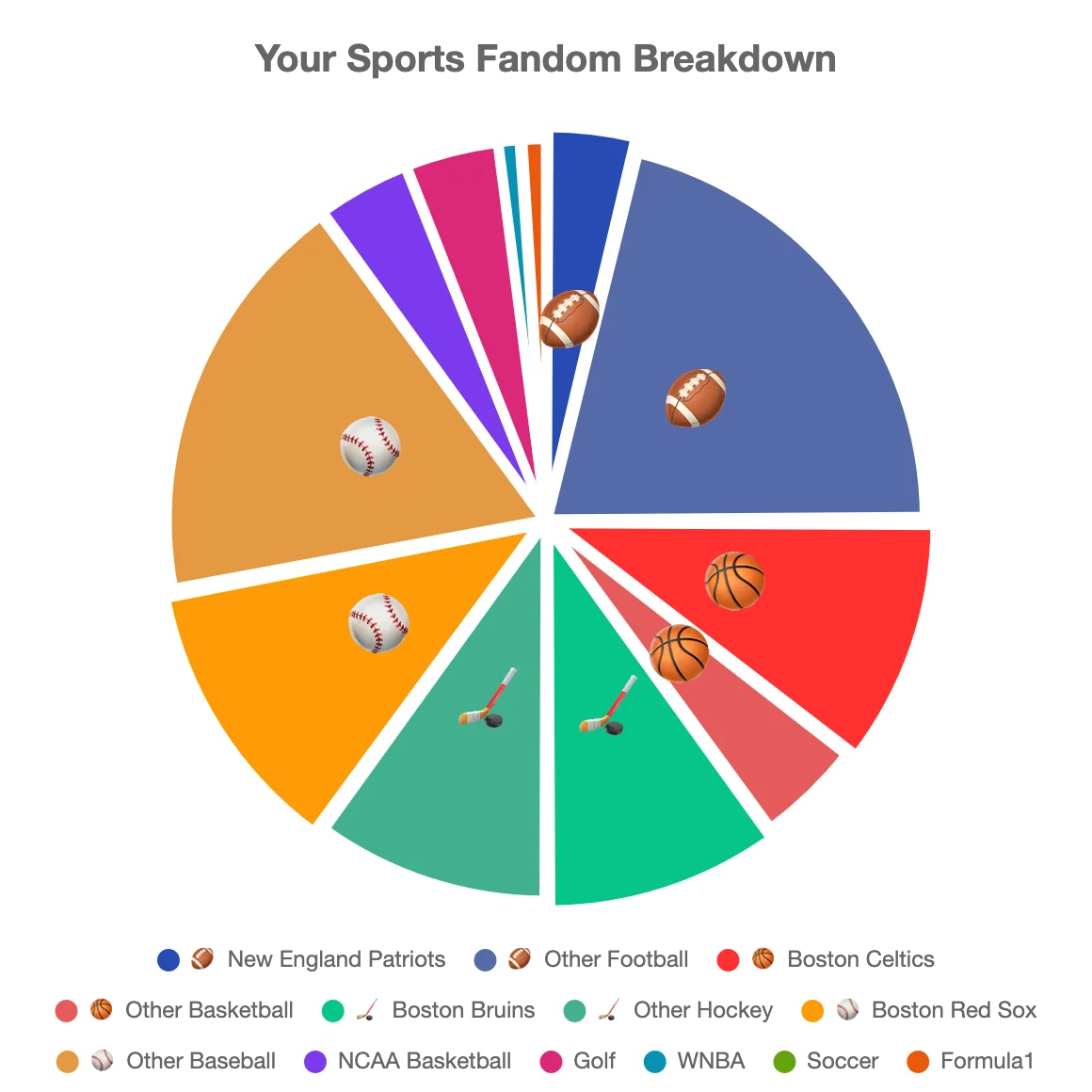 My friend Aaron shared a video in a group chat we are in last week related to the sports equinox. In the video he attempted to answer a question that a friend had posed to him: “what does your sports pie chart look like?”